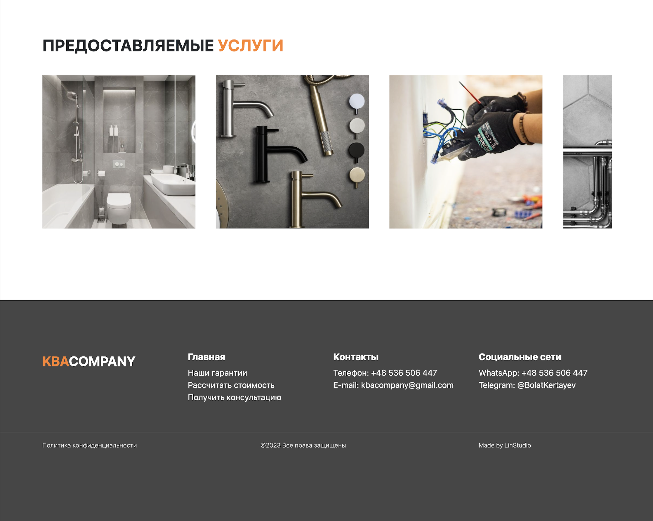 A detailed description of services, such as electrical repairs, plumbing, furniture assembly, and minor renovation work, was added. Each service has its own subsection, making it easy for users to find the information they need.